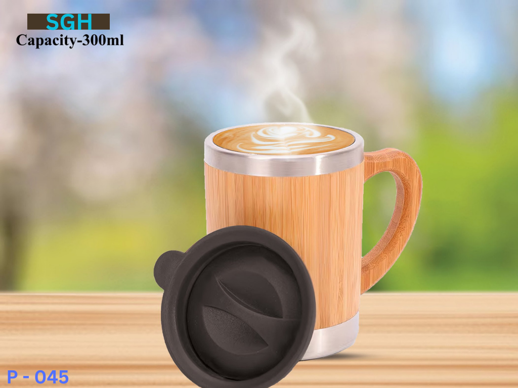 The SGH 300ml bamboo mug is a stylish and sustainable choice for tea or coffee lovers. Made from natural bamboo with a stainless steel interior, it ensures heat retention and safety. The ergonomic handle and included spill-resistant lid add to the user-friendly design. Ideal for home, office, or outdoor use, this mug combines eco-conscious materials with practical performance. A perfect blend of nature and utility in your daily routine.